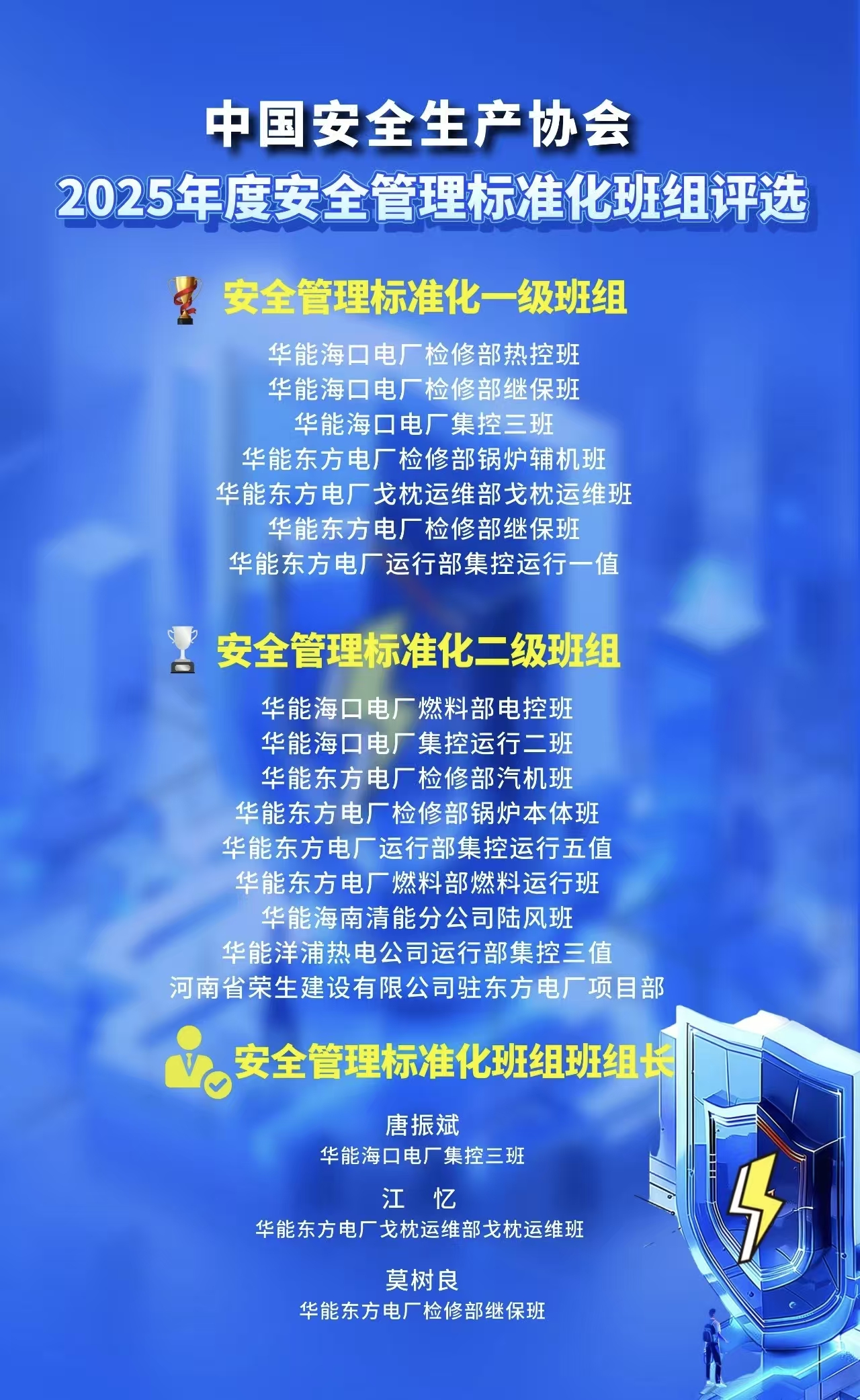 2025年东方电厂安全管理标准化二级班组